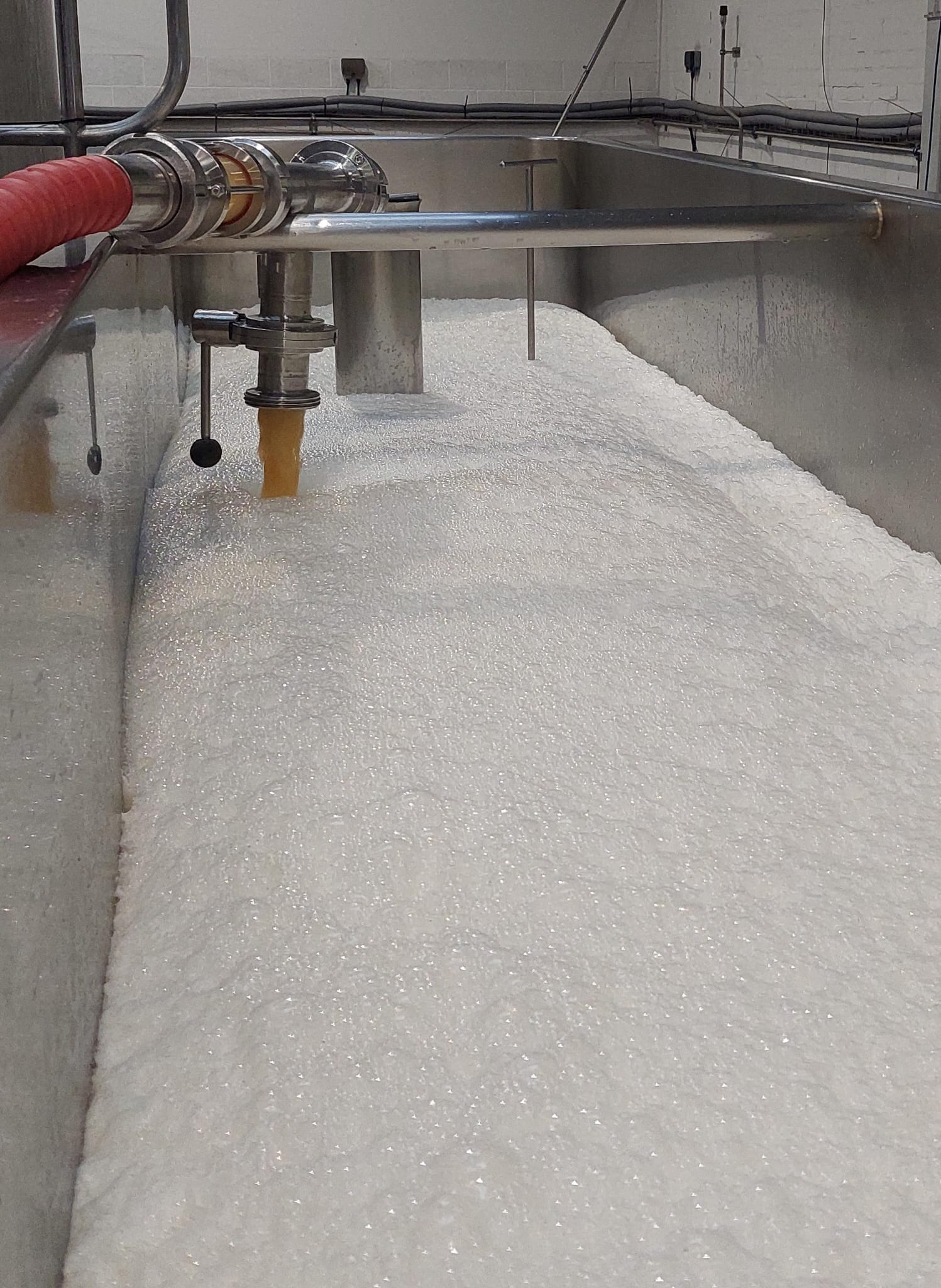 On the 20th of May, we brewed a double Jaipur at the Riverside brewery, producing 10,000 litres of wort. About 14 hours later, on the 21st of May, half of this Jaipur wort was transferred to the Union system and fermented there for about 4 days before being dropped out of the Union and pumped back into a separate racking tank. A few days later, we racked this, our first ‘union’ beer, into casks in the usual way, with priming sugar and finings and cask-conditioned them in our cold store.